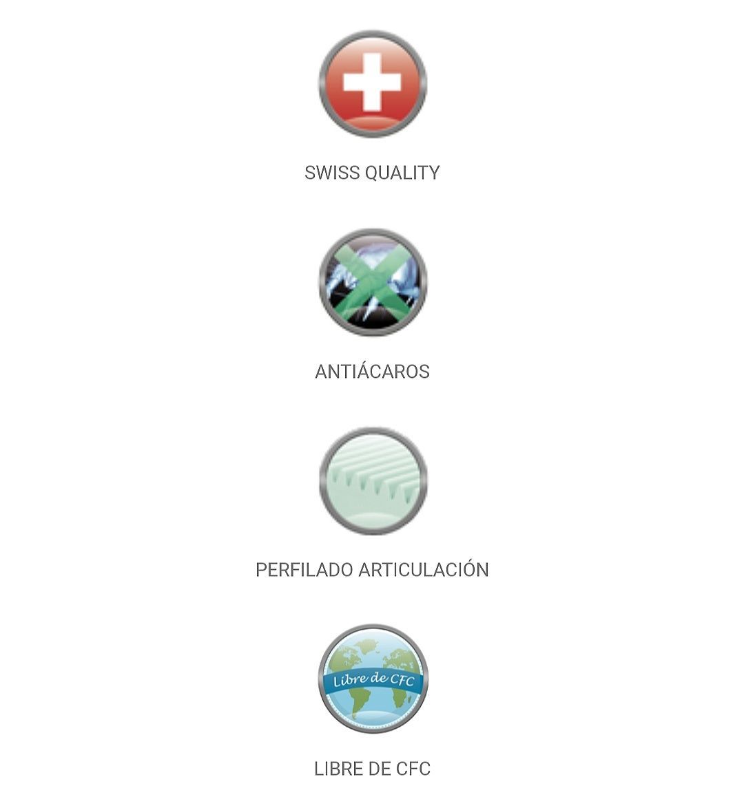 Swiss Quality: Certifica que el material viscoelástico que se utiliza, ha sido fabricado en Suiza bajo los más altos estándares de calidad y cuidado del medio ambiente.