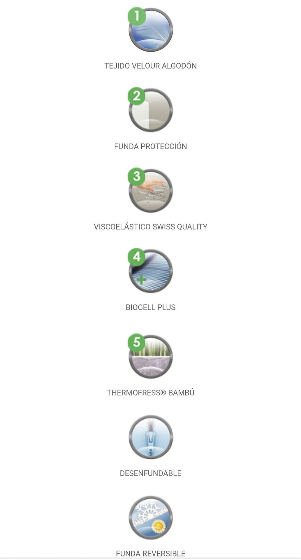 Thermofress: Tejido tridimensional fabricado con bambú. Crea una cámara de aire entre el cuerpo y el Colchón, regulando la temperatura corporal.