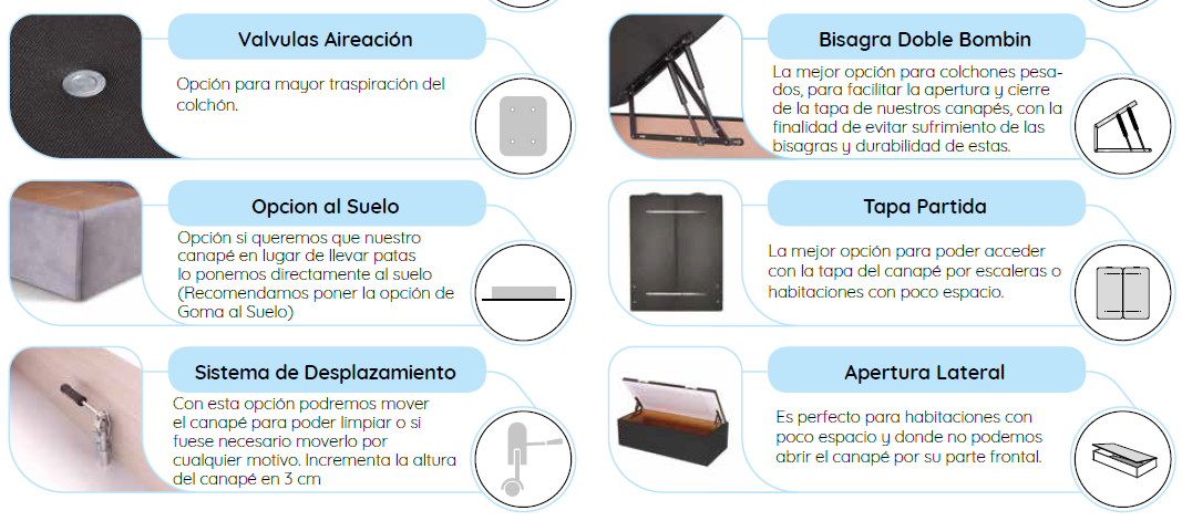 - Tapa en 3D fabricada en tablero de 8mmcon estructura metálica de 40x30 con 16 huecos de ventilación y ángulo anticonbeo de 120 cm. Sujección de la estructura metálica al tablero de la misma mediante clavado y pegado para así evitar los molestos ruidos de la tapa.