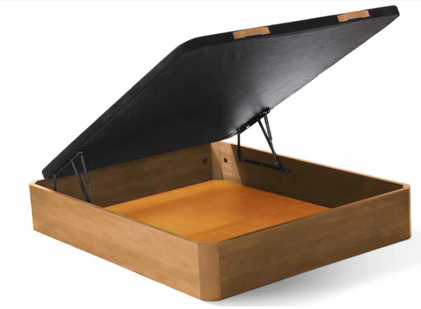 Canapé de madera al suelo con patas de madera maciza de 11x4, tapa en tejido 3D con ángulo anticonveo de 120 cms. Altura exterior de 34 cms , capacidad interior de 28 cms y costado de 30 mm.